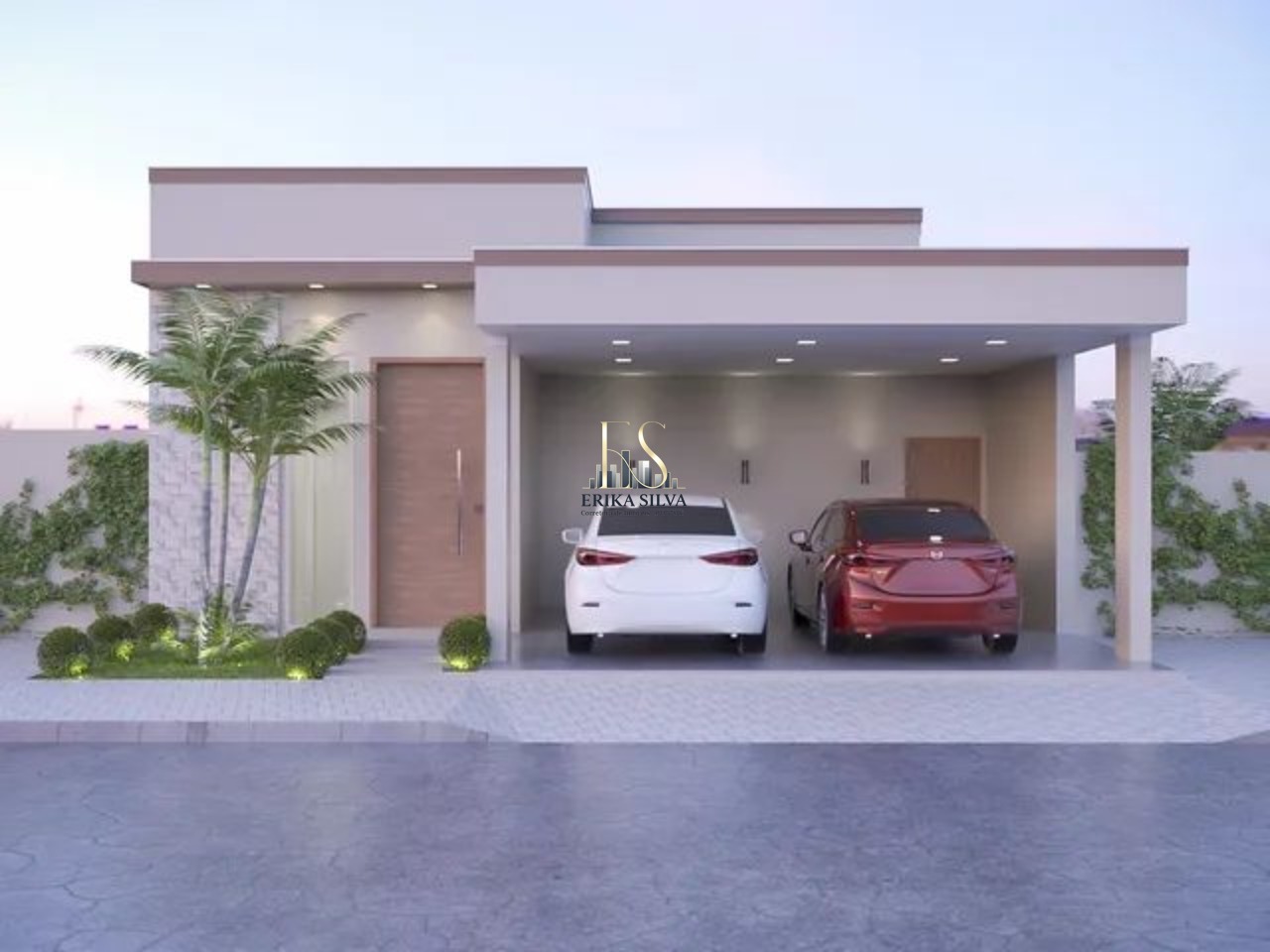 1 Sala, 1 cozinha, 1 lavabo, 3 quartos sendo 1 suite, 1 banheiro social, 1 lavanderia e garagem para 2 carros.