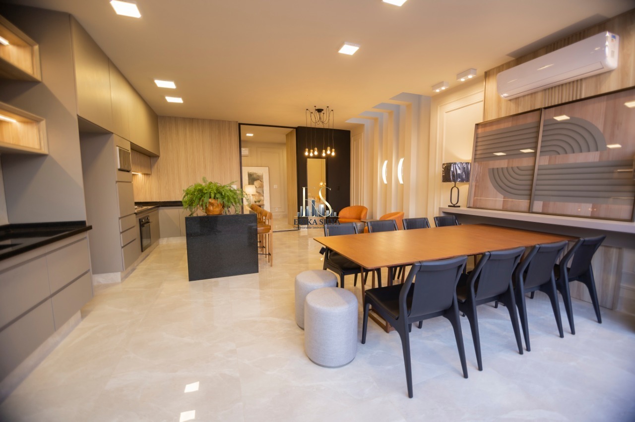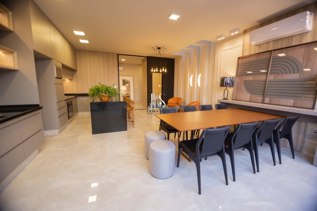 ?? Cozinha com cooktop, microondas, forno elétrico, arma?rios, ar condicionado e iluminação decorativa;