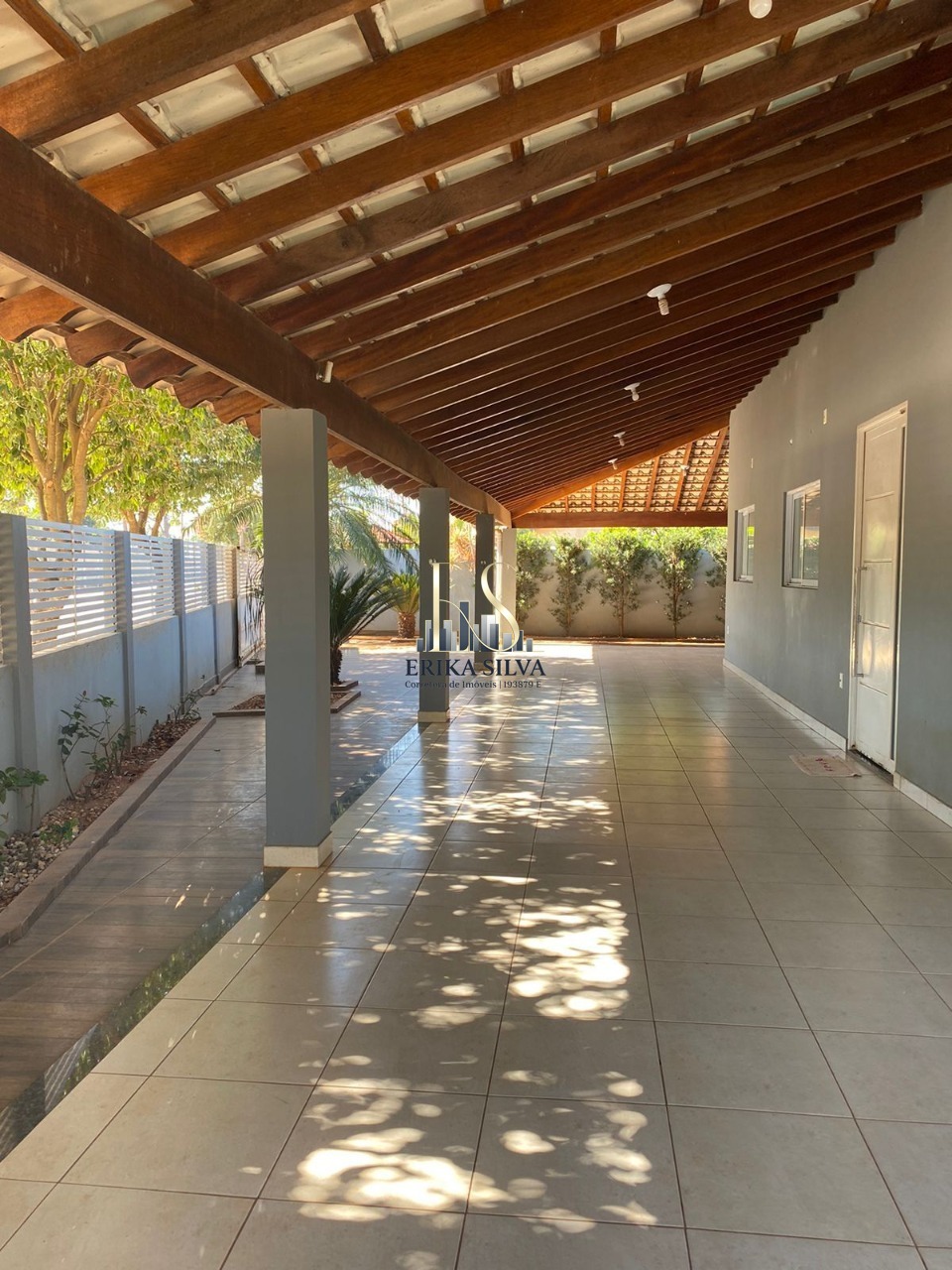 Gigantesca varanda toda coberta, onde cabem 4 carros um atrás do outro, ou diversas mesas para recepcionar convidados.