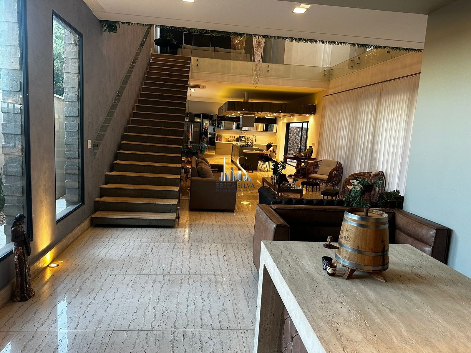 Além disso, a casa possui 3 amplas salas, perfeitas para receber amigos e familiares, 6 banheiros finamente decorados, e uma cozinha espaçosa e equipada com armários planejados.