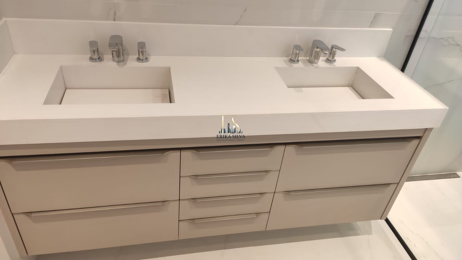 2 chuveiro e duas cubas no quarto máster