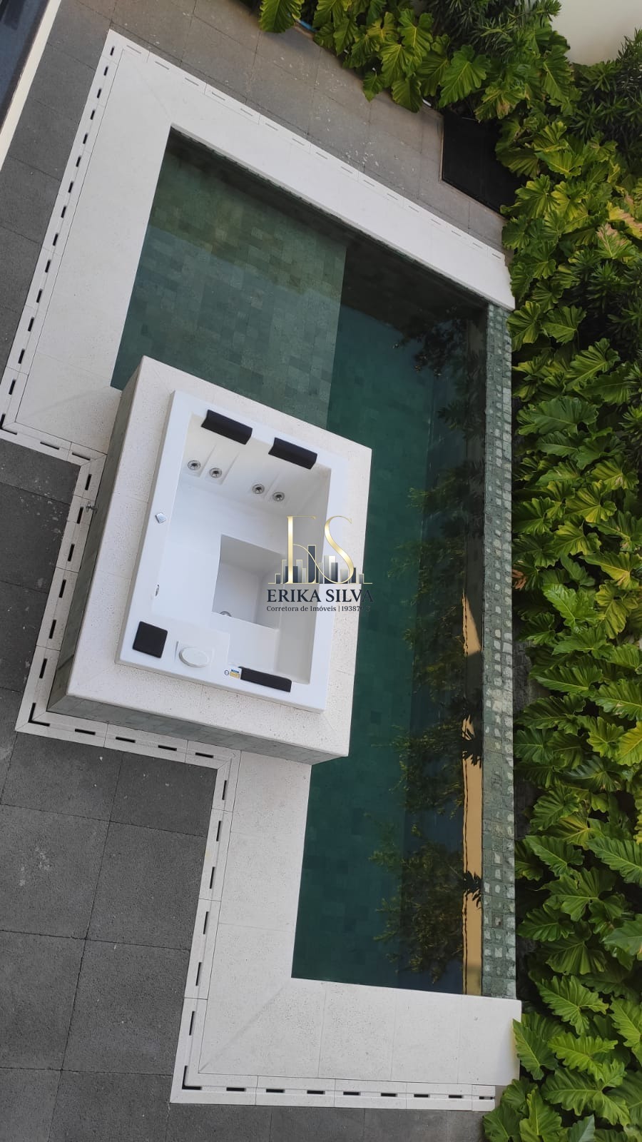 Piscina com aquecimento e revestida com pedra hijau, com SPA
