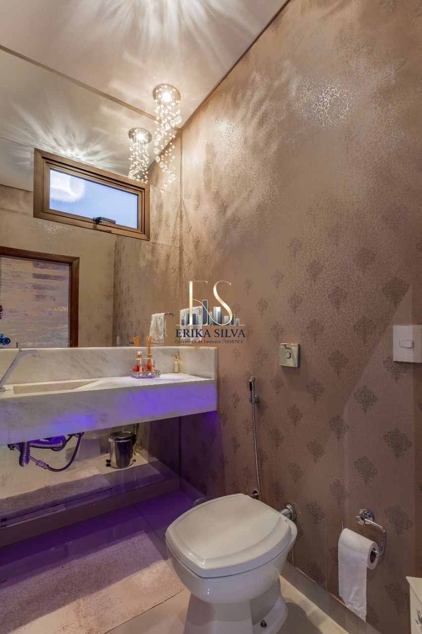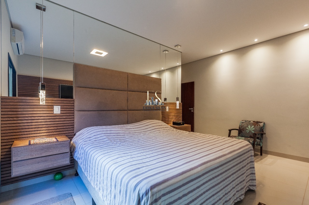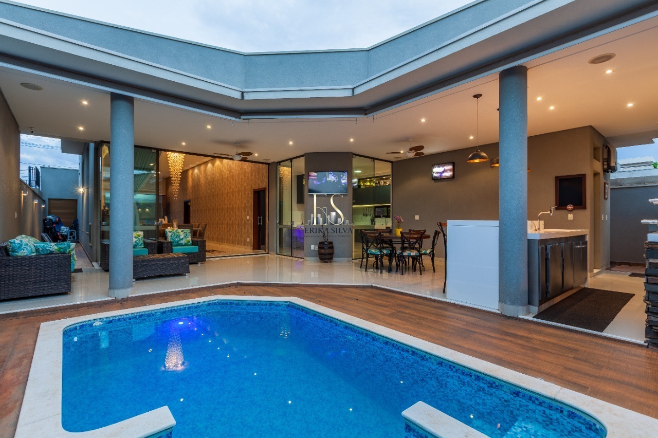 3 dormitórios, sendo três suítes, sala para dois ambientes, cozinha planejada, copa, área de serviço, dispensa, ar condicionado, closet, churrasqueira, piscina.