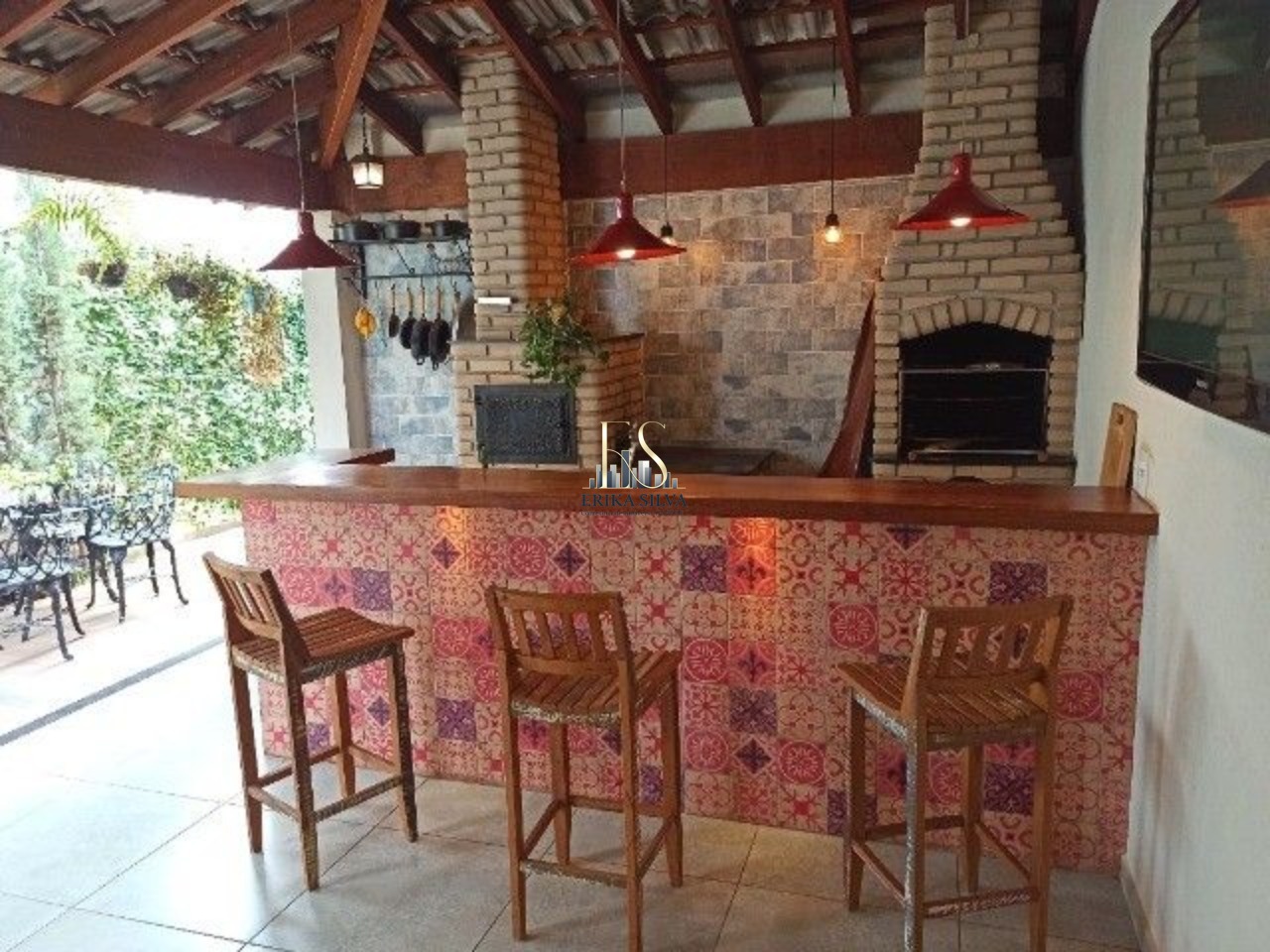 4 Quartos bem distribuídos, sendo 1 banheiro americano para 2 quartos, 1 suíte, 1 lavabo, sala ampla com pé direito alto integrada a cozinha e varanda com churrasqueira, forno e fogão a lenha. Garagem com 4 vagas, sendo 2 vagas cobertas. Escritório, Área de Serviço.