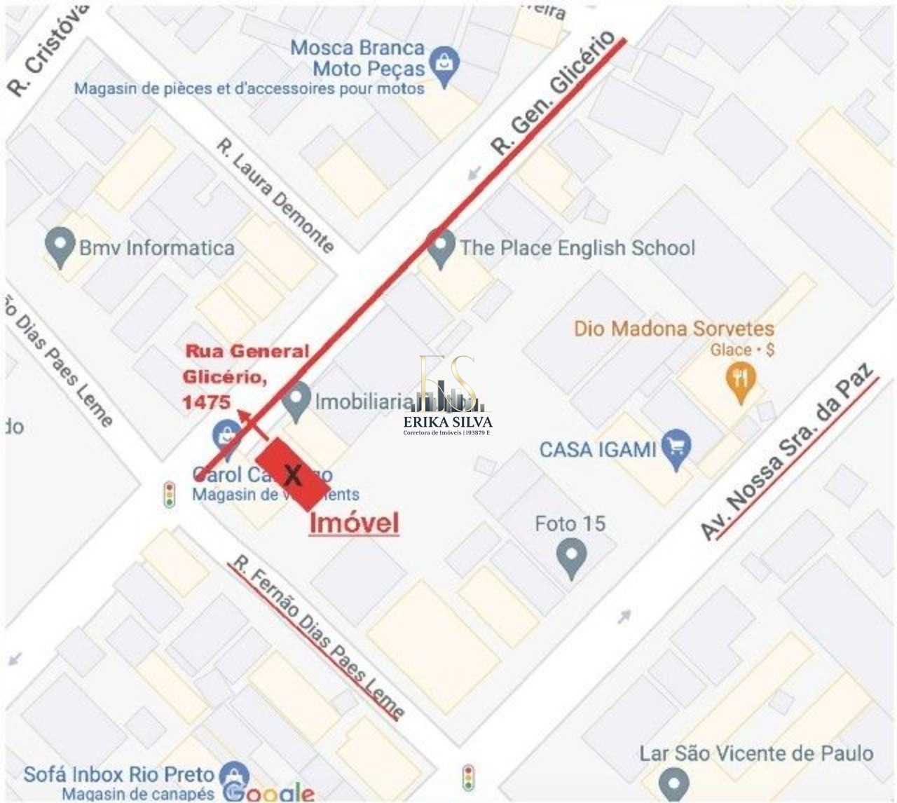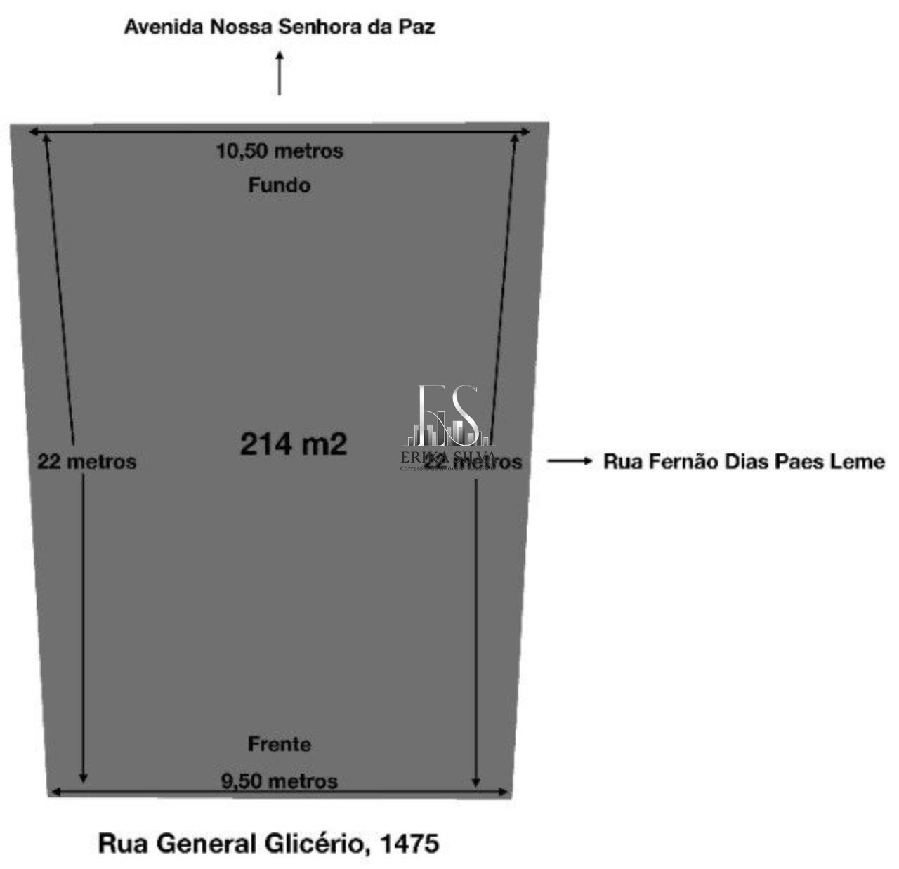 frente 9,50 metros x 22 metros x fundos 10,50 metros. Área total: 214 m2; construída: 154 m2.