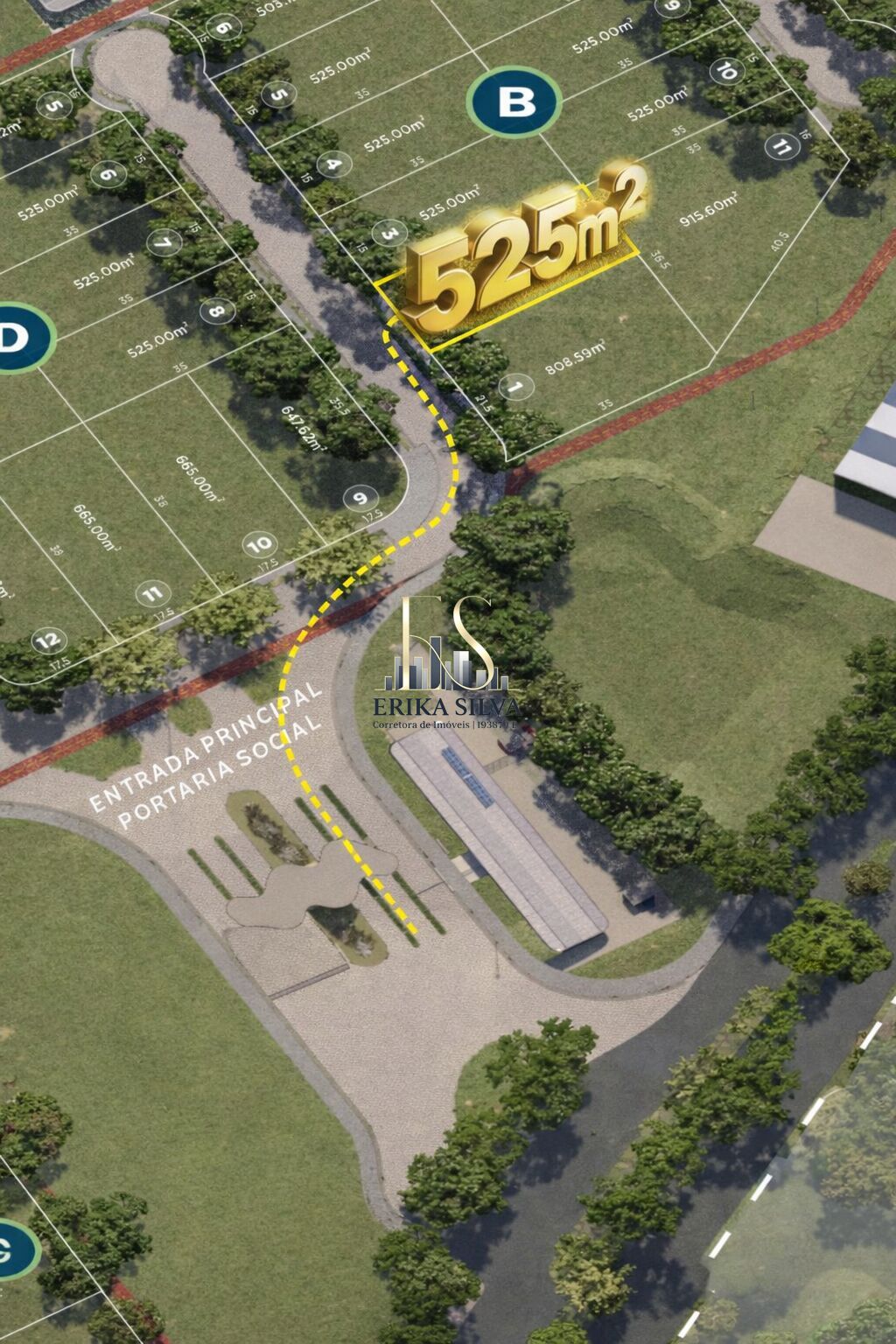 Este lote conta com 525m², com excelente posicionamento dentro do condomínio e localização estratégica próxima à portaria, garantindo praticidade no dia a dia e maior valorização.